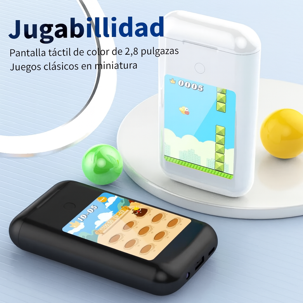 🎮 Mini consola integrada: Juega directamente desde la pantalla del estuche para momentos de entretenimiento rápido.
